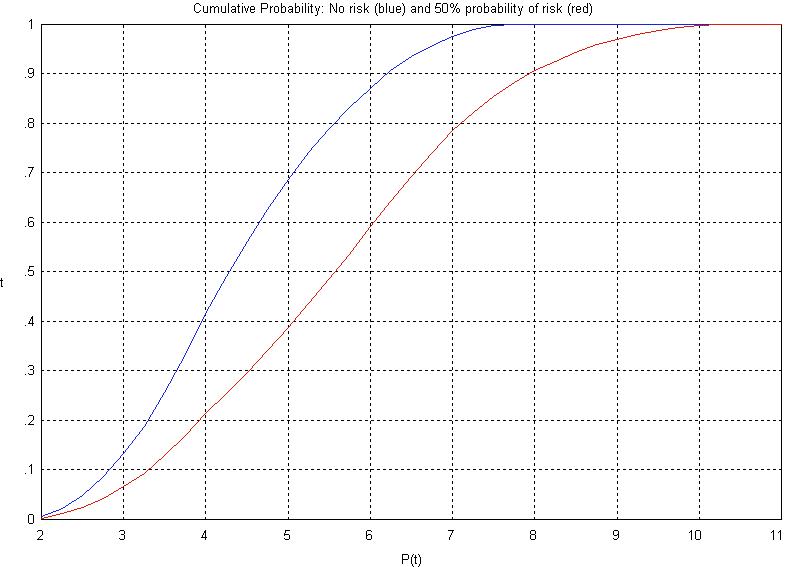 The CDF for the additional time taken if the risk eventuates (which we’ll denote by ) is given by: