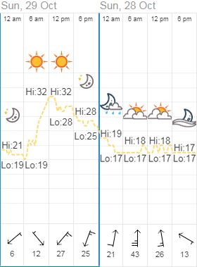 To begin with, it is easy enough to compare the weather conditions on the two days: 29 Oct 2017 and 28 Oct 2018. A quick browse of this site gave me the data as I was after (Figure 2).