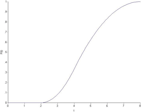 As it turns out, in Monte Carlo simulations, we don’t directly work with the probability distribution function. Instead we work with the cumulative distribution function (or CDF) which is the probability, , that the task is completed by time